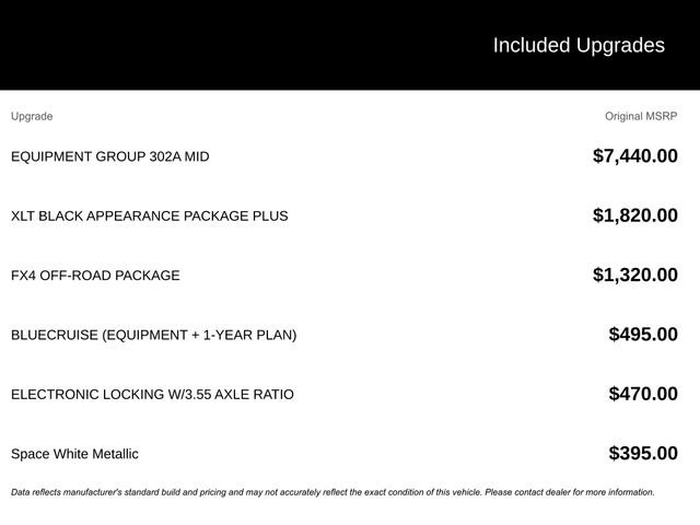 Price includes dealer added accessories. In addition, every vehicle comes with Ford Surface Protection, Nitro, Window Tint and Vin Etch at $1,397. See dealer for details. Price does not include Tax, Title, License or $425 Doc Fee. Customers may qualify for additional offers. See dealer for details. Price includes: Price does not include Tax, Title, License or $425 Doc Fee. Customers may qualify for additional offers. See dealer for details. Price includes: $1250 - Retail Bonus Cash. Exp. 01/05/2026 $2000 - Retail Bonus Cash. Exp. 01/05/2026