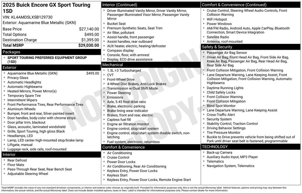 This 2025 Buick Encore GX Sport Touring is a certified pre-owned vehicle, meaning it has undergone a rigorous inspection and comes with the assurance of a manufacturer-backed warranty. Discover the perfect balance of style, performance, and practicality with this exceptional SUV.