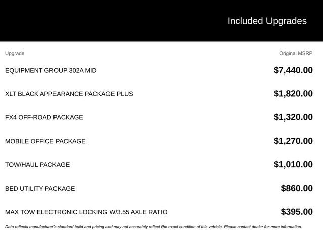 Price includes dealer added accessories. In addition, every vehicle comes with Ford Surface Protection, Nitro, Window Tint and Vin Etch at $1,397. See dealer for details. Price does not include Tax, Title, License or $425 Doc Fee. Customers may qualify for additional offers. See dealer for details. Price includes: Price does not include Tax, Title, License or $425 Doc Fee. Customers may qualify for additional offers. See dealer for details. Price includes: $2000 - Retail Bonus Cash. Exp. 01/05/2026